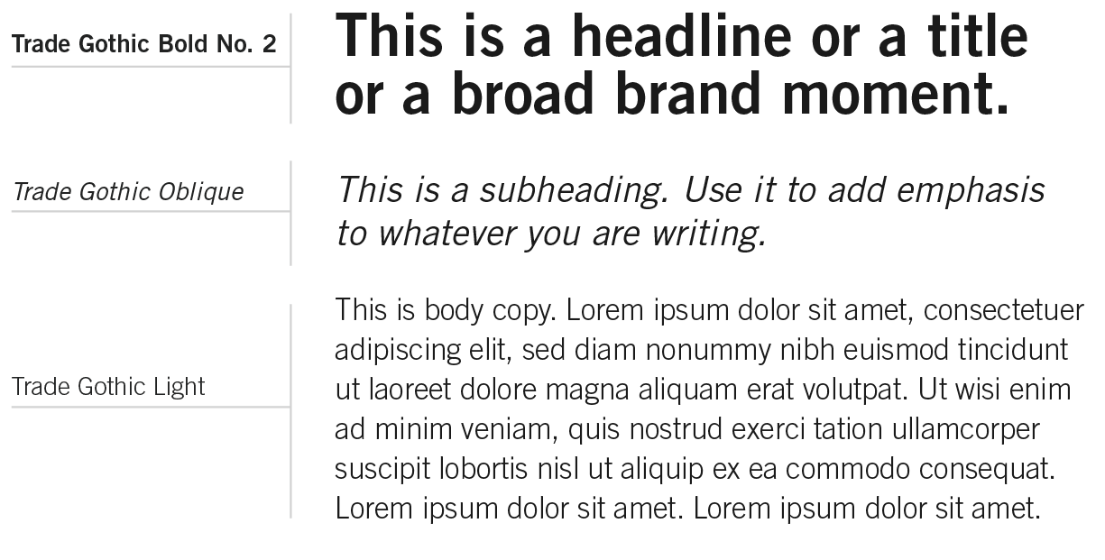 Fonts express as much as words. They convey feeling, establishing a consistent and ownable visual language for __________.